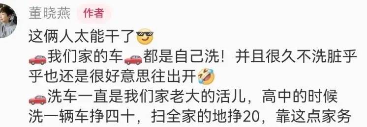 大儿子为了块,贾一平也为了块,父子俩就在太阳底下拿着水枪洗车,只能说他们的家庭氛围挺好的,合理给孩子安排工作挣零花钱,比较值得学习。